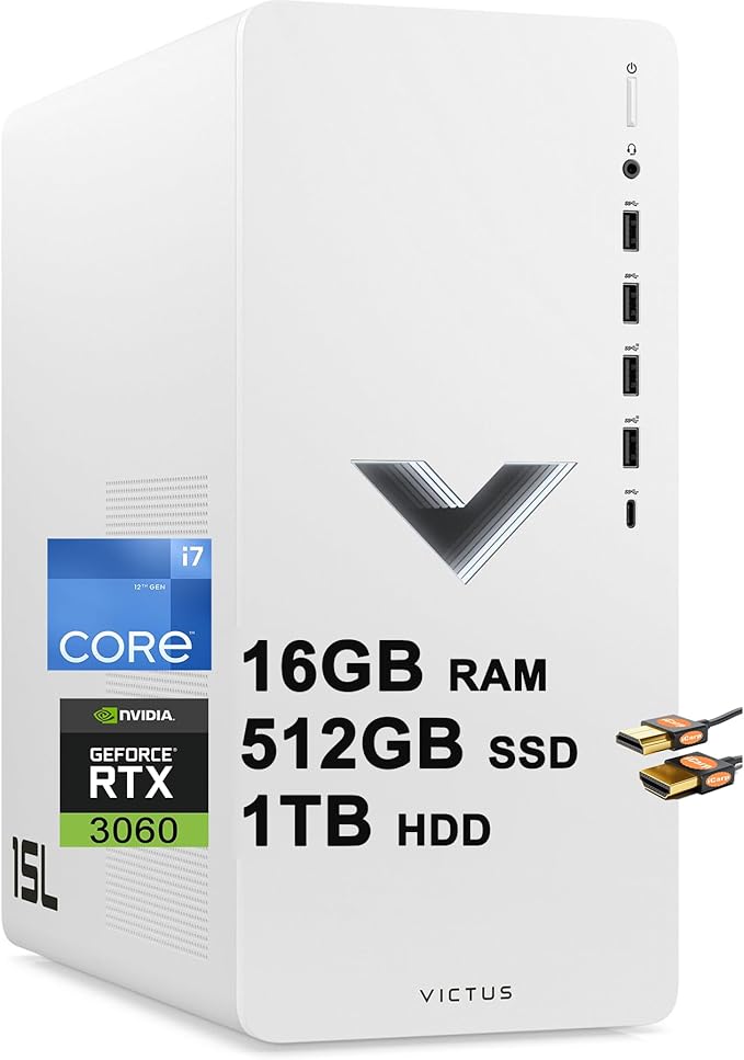 HP Victus 15L Gaming Desktop Computer Intel 12-Core i7-12700 Processor 16GB DDR4 512GB SSD + 1TB HDD Geforce RTX 3060 12GB Graphic USB-C DiplayPort Win11 + HDMI Cable, Black